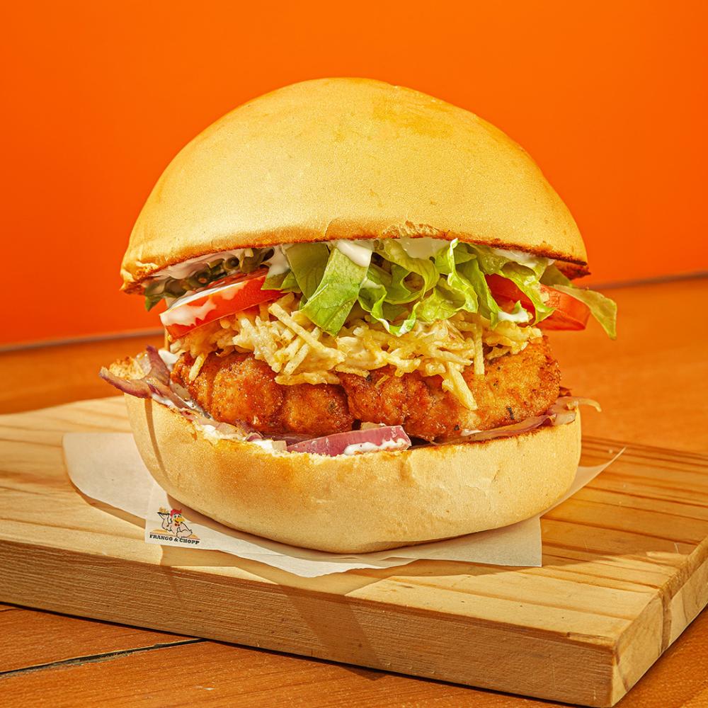 Sanduíche com filé de peito crocante 120 g, alface, batata palha com maionese, salada mix tropical, fatia de bacon e molho especial.