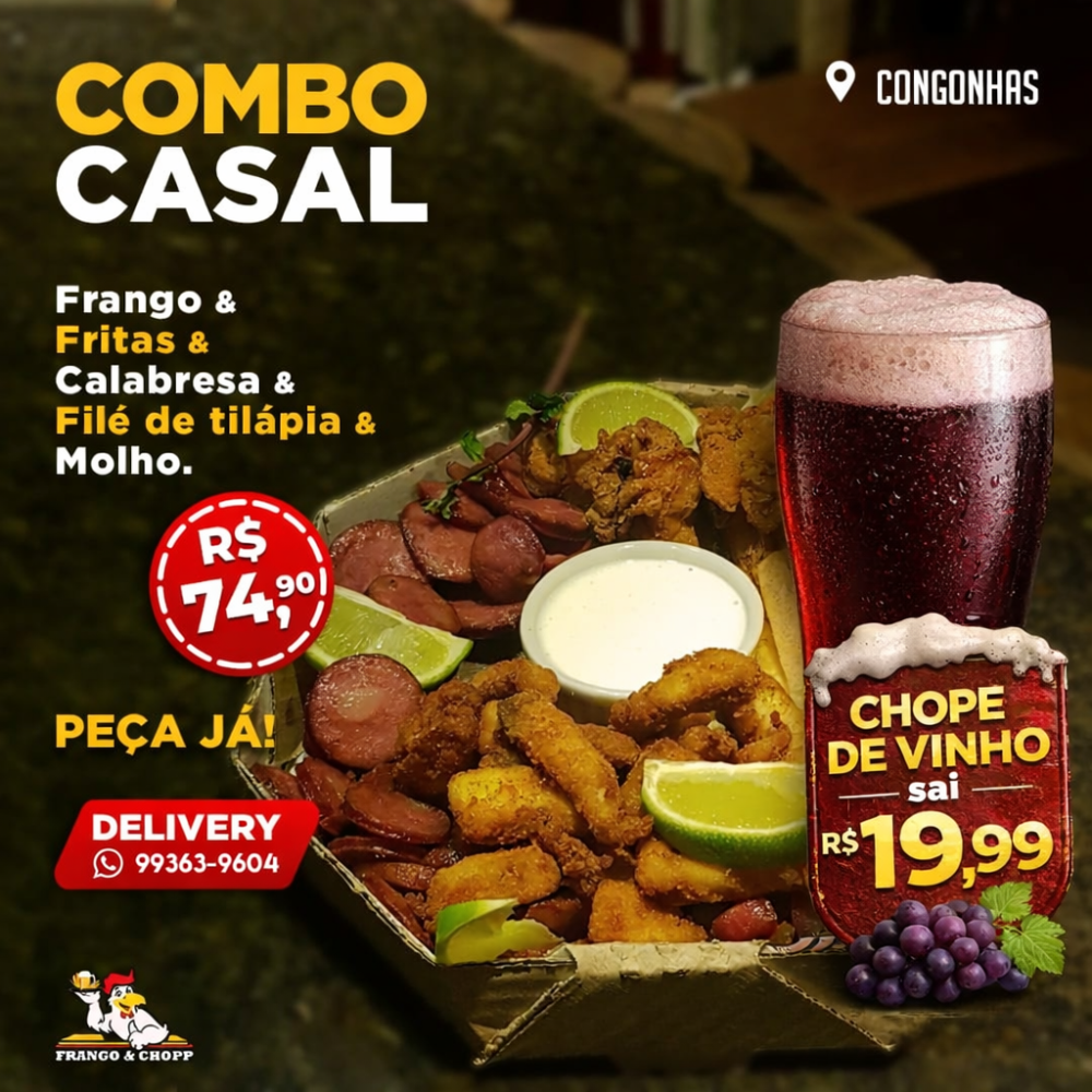 💥 Na compra do Combo Casal, o CHOPE DE VINHO sai por apenas R$ 19,99!