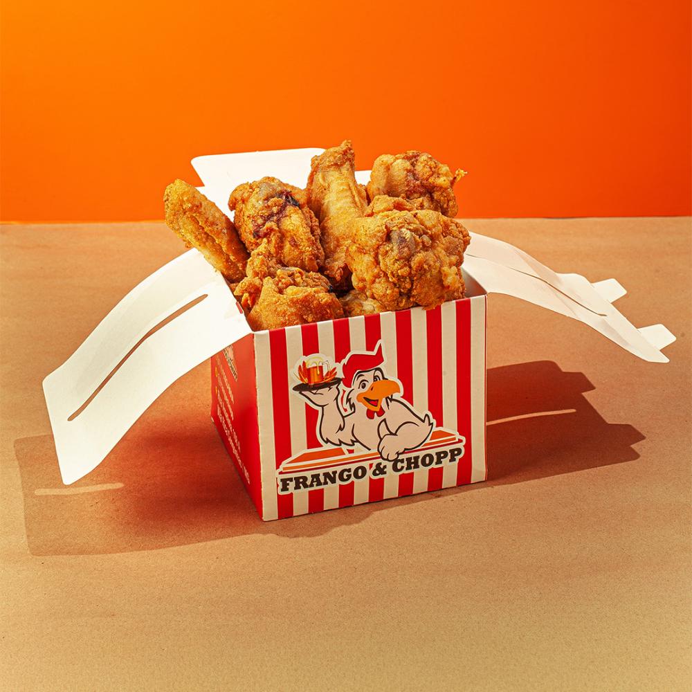 Sobrecoxa, meio da asa e coxinha da asa.(Misto) Os frangos empanados mais irresistíveis da cidade. Crocante e Suculento.